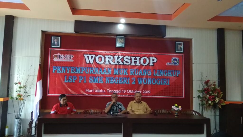 Wonogiri, 20 Oktober 2019. Untuk lebih meningkatkan kompetensi guru SMK Negeri 2 Wonogiri, maka pada hari sabtu tanggal 19 Oktober 2019 bertempat di aula lama SMK Negeri 2 Wonogiri di adakan kegiatan Workshop LSP P1 dengan tema ” Penyempurnaan MUK ruang lingkup LSP P1 SMK Negeri 2 Wonogiri”, kegiatan di mulai pada […]
